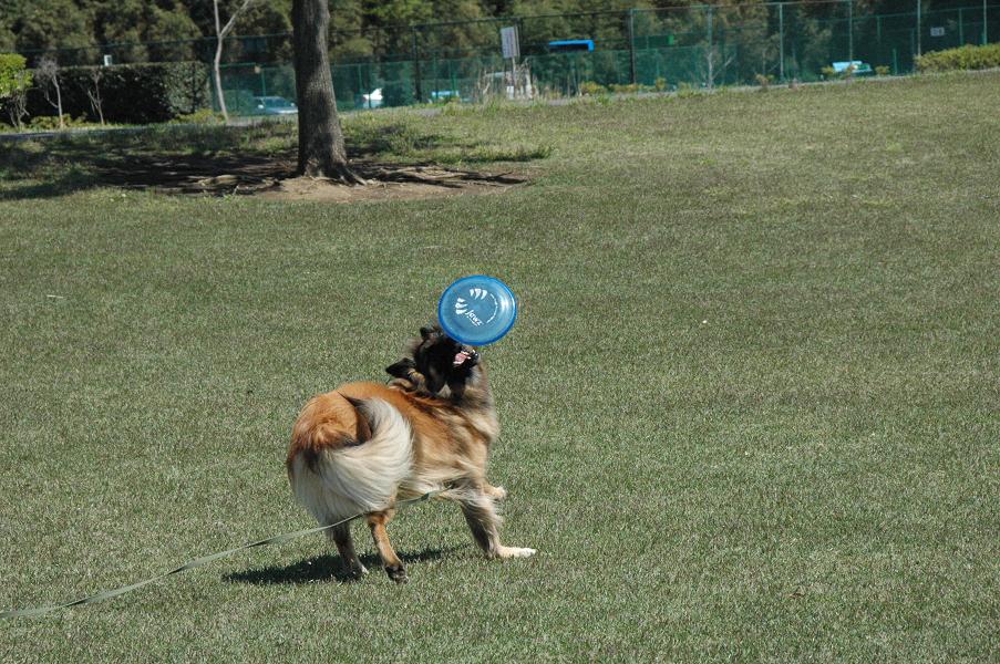 「そら、狼曉!」と投げてやると、飛んでく事飛んでく事、見事にディスクをキャッチ!とそこまでは良かったのです。