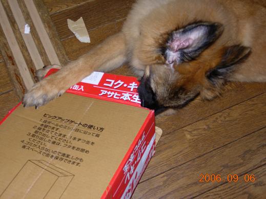 思った通り、トランクスが脱ぎ散らしてある。急いで咥えてまたふぁんぐと私の前に「これでどうだ!」とばかりに登場する。