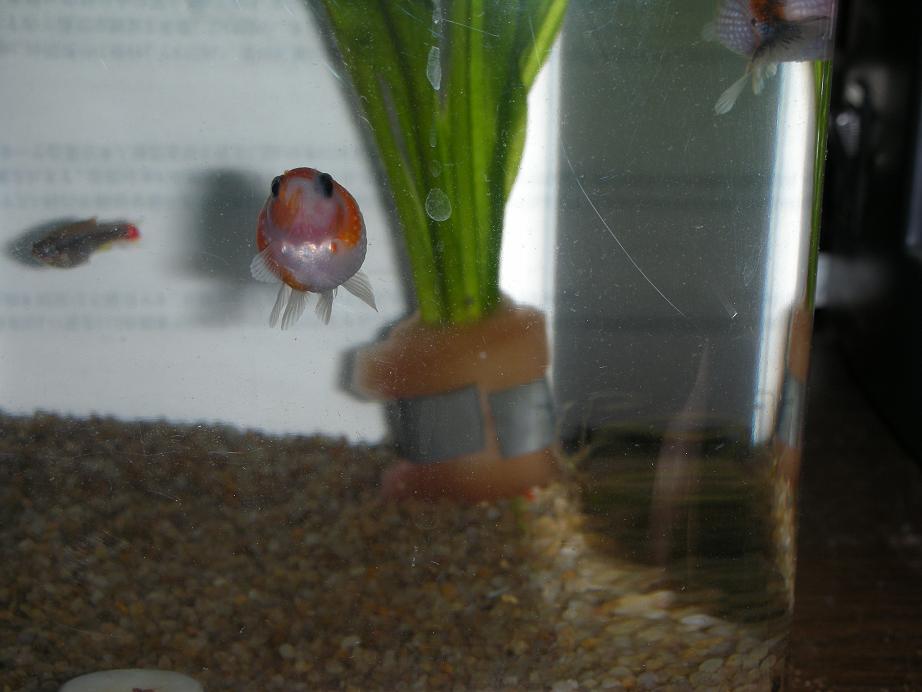 コッピーとめだかだけでは確かになんとなく淋しい水槽、またもやふぁんぐに押し切られ、我が家の一員となりました。